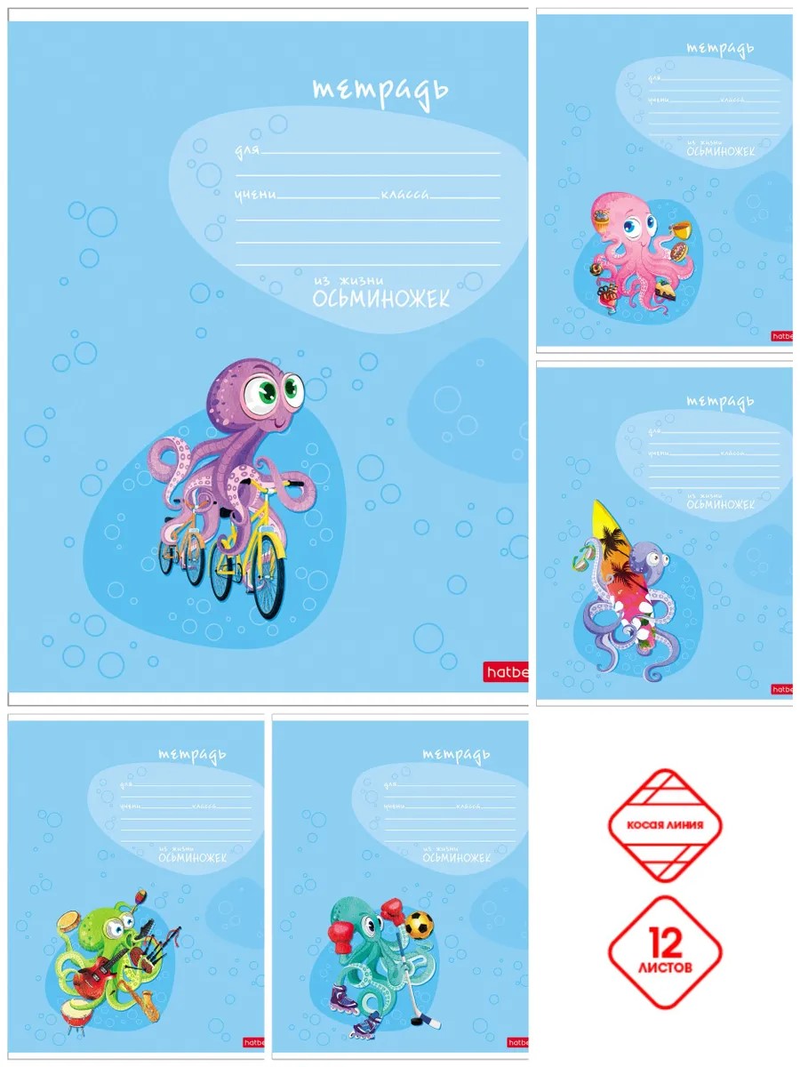 Երկտող տետր թեք գծերով 12 էջ - Осьминожки