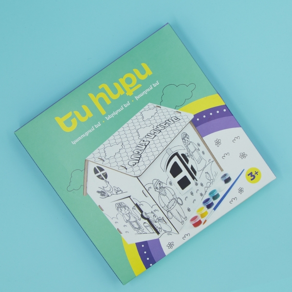 Ներառում է. 1 ստվարաթղթե եռաչափ տնակ`《Պոչատ աղվեսը》 հեքիաթի հերոսներով Ակրիլային անվտանգ ներկերի հավաքածու` 6 տարբեր գույներով 1 վրձին Եռաչափ տնակը հավաքելու համար պարզապես իրար միացրեք 5 կտորները։ Ակրիլային ներկերն oգտագործելուց հետո ամուր փակեք, որպեսզի չչորանան։ Հեշտությամբ մաքրվում են վրձնից, ձեռքերից ու հագուստից։ Հավաքված տնակի չափսը՝ 15սմ x 21սմ x 20սմ