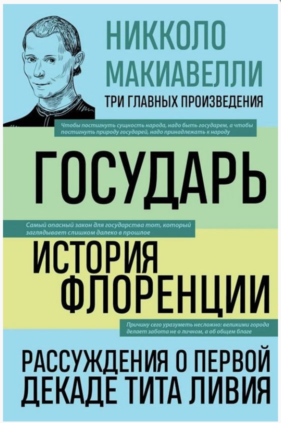 В книге «Государь. История Флоренции. Рассуждения о первой декаде Тита Ливия» собраны три главных произведения Никколо Макиавелли, раскрывающие его взгляды на политику, развитие государства и феномен власти. Идеи выдающегося политика, философа и писателя Возрождения до сих пор остаются актуальными для всех, кого интересует как политика родной страны, так и международные отношения.В честь Макиавелли была названа особая государственная политическая стратегия — макиавеллизм, основанная на идее, что любые государственные цели должны быть достигнуты вне зависимости от их цены. «Цель оправдывает средства» — крылатая фраза Макиавелли, объясняющая суть его политической философии.Из этой книги вы узнаете, как управлять государством, каковы признаки достойного правителя, как народ может влиять на развитие своей страны.Никколо Макиавелли (1469—1527) — выдающийся итальянский политический деятель, философ и писатель, секретарь второй канцелярии Флоренции, занимавшийся дипломатическими связями республики.