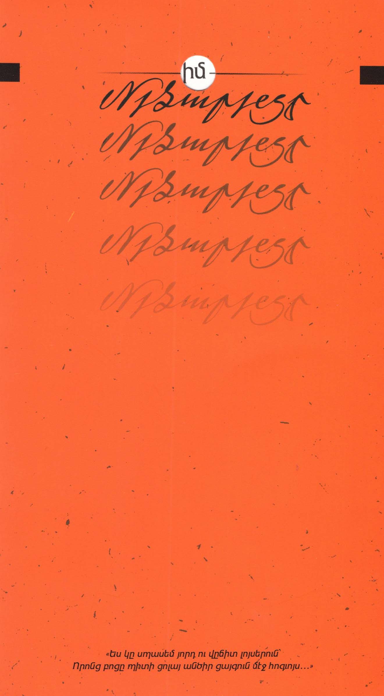 մատենաշարը մտերմիկ զրույց է ընթերցողի եւ գրողի միջեւ՝ պոետական խոսքի նուրբ ելեւեջներով. համարձակ մի քայլ, երբ ոչ թե մտապատկերում, այլ ձեռքին ընթերցողը կարող է ունենալ իր սիրելի գրողի ստեղծագործությունների՝ բացարձակ նոր շերտեր բացահայտող ժողովածու։ Մատենաշարի տարբերա նշանի ձեռագրային ընտ րությունը պատահական չէ... Թումանյանի ներկայությունը գաղտնագրային է՝ որպես հսկող աչք պոետական աշխարհի, որն ամեն ակնթարթ կարող է իմ-ը մեր-ի փոխել։