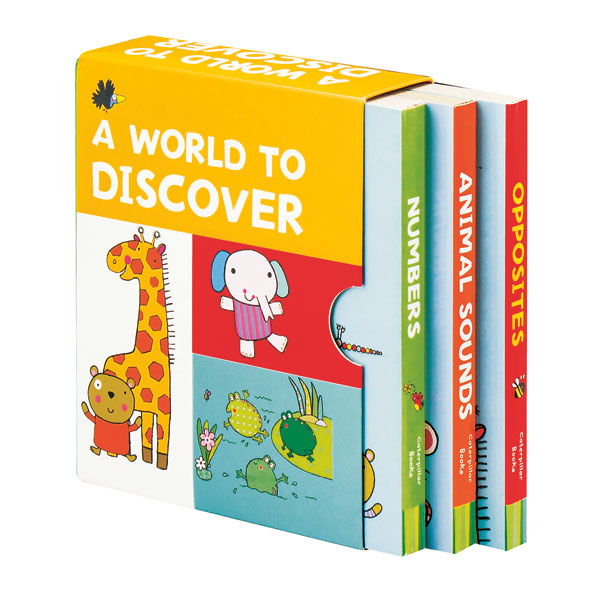 There's so much for toddlers to learn, and much of it must be learned visually; the sweet, childlike illustrations in this trio of board books help ensure that the ideas resonate with prereaders. In Numbers, one dog plays hide-and-go-seek with two bees, and ten is represented by ten twinkly stars. Opposites contrasts a big elephant with the small bugs scurrying out of his way, and a camel in the hot desert with the polar bear who lives in a cold land, while in Animal Sounds, a monkey chatters, a tiger roars, mice squeak, and an owl says, 'Twit twoo' (3 vols., Boxed).