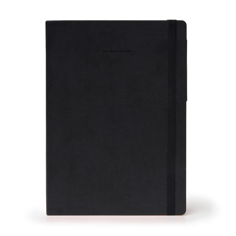 NOTEBOOK LARGE L 17 x H 24 cm - 192 numbered pages Index - Map to record your trips around the world - Page for New Year’s resolutions - 12 pages with monthly planner - Fun icons to mark the daily weather - Contacts list - Page to record IDs & passwords - Cover made of soft PU - Elastic closure - Bookmark - Rounded corners - 90 g/m2 ivory paper - Pagemarker flap/pen holder - Back pocket