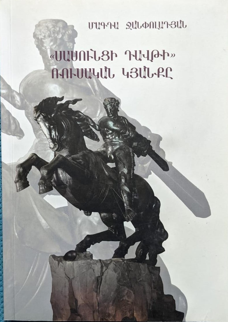 Գրքում ներկայացված և բնութագրված են հայ հերոսական էպոսի ռուսերեն թարգմանությունները և քննադատական արձագանքները էպոսի մասին` սկսած XIX դ. 80-ական թթ. մինչև XX դ. 80-ական թթ.: Բացահայտվում է, որ թե թարգմանությունները, թե ռուս իրականության մեջ մեր դյուցազներգության քննադատական արժևորումը հայ-ռուս գրական և մշակույթային կերպարի պատմության ուշագրավ և ամենավառ էջերից են: