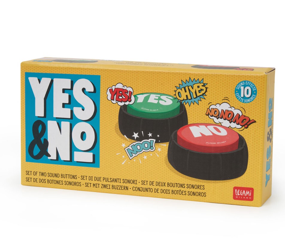 Turn everything into a game with the Legami Yes & No Set of two sound buttons. Simply hit either button to activate 1 of 10 different sound variations and let them respond to the question for you. You’ll be too busy laughing to respond yourself. 2 AAA batteries included