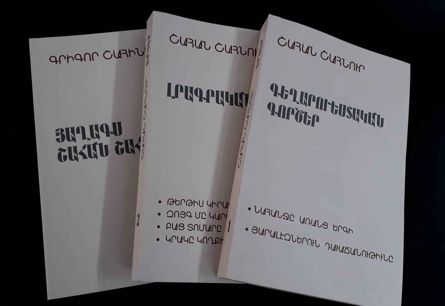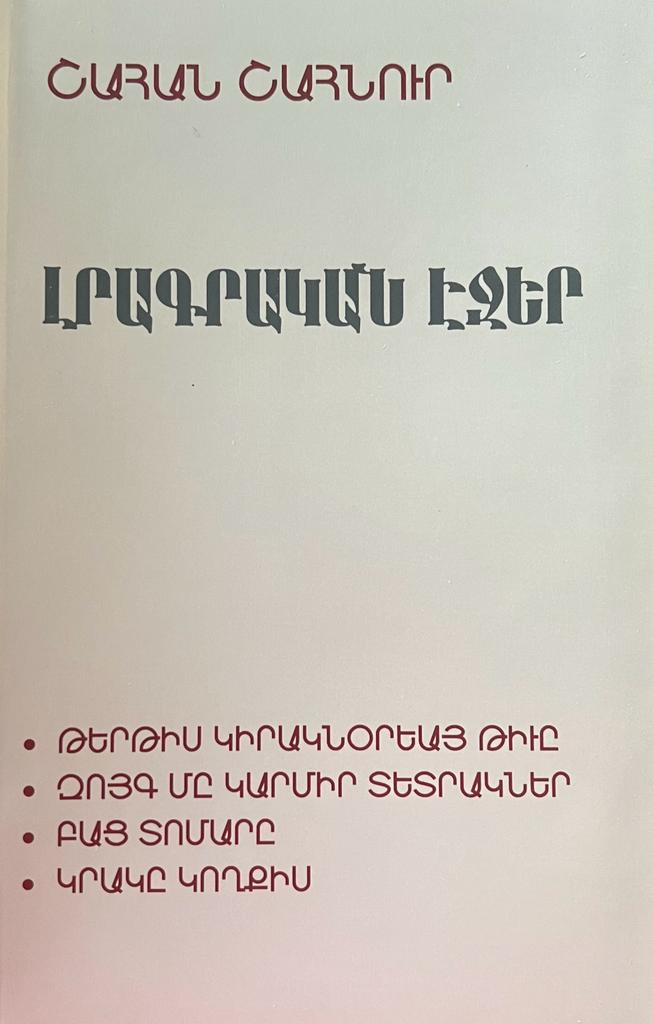 Պոլիս ծնած եւ քսան տարեկանէն ետք Ֆրանսա ապրած Շահան Շահնուրը քսաներորդ դարու արեւմտահայ գրականութեան ամենէն ինքնատիպ դէմքերէն է: Պոլսահայ կեանքը թէ գաղթական հայու կենցաղն ու անոր ապաստան եղող երկրի միջավայրը պատկերող իր գեղարուեստական էջերը ան կոչած է «Պատկերազարդ պատմութիւն հայոց»: Անոնք կը կազմեն այս եռահատորի առաջին գիրքը: Երկրորդ հատորին մէջ ամփոփուած են Շահնուրի հրապարակագրական գրութիւնները՝ իր բնորոշումով՝ «Լրագրական էջեր»ը: Երրորդ հատորը կը ներկայացնէ Գրիգոր Շահինեանի «Յաղագս Շահան Շահնուրի» մենագրութիւնը: Այս հրատարակութեամբ առաջին անգամ ըլլալով ընթերցողին կը ներկայացուի Շահան Շահնուրի հայալեզու գրական ամբողջ վաստակը այնպէս. ինչպէս գրած. վերանայած կամ վերհպումի ենթարկել փափաքած է ինքը՝ Շահնուրը: Այս ժողովածուն էապէս կը հարստանայ Գրիգոր Շահինեանի ծանօթագրութիւններով եւ մանաւանդ Շահնուրի գրական վաւերական կերպարը կերտող իր վերլուծութեամբ: