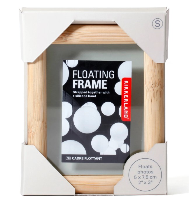 Made of bamboo with glass plates. Use the silicone band to secure the frame to hang on the wall. (2" x 3" / 5 x 8 cm photo) Design: Studio Doo Doo Materials: bamboo, glass, silicone Packaging: color box Dimensions: 12,6 x 9,9 x 1,5 cm