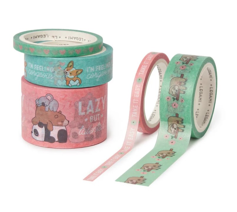 Bring tropical vibes to your arts & crafts projects with the Legami Tape by Tape Cute Animals Set of 5 Colourful Paper Sticky Tapes. With a length of 5 metres and a vibrant palette, these sticky tapes will brighten up your packages, papers and collages instantly.