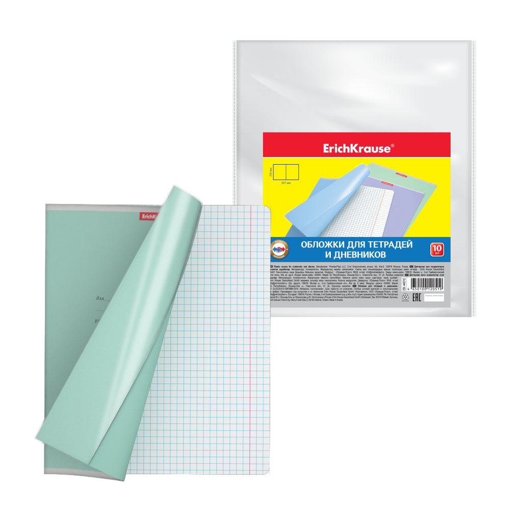 Обложка из высококачественного прозрачного пластика с особо прочными швами и текстурой поверхности "Orange peel", на которой не видно отпечатков пальцев и мелких царапин. Надежно защищает тетради и дневники от повреждений. Гарантированно подходит для продукции ErichKrause®.