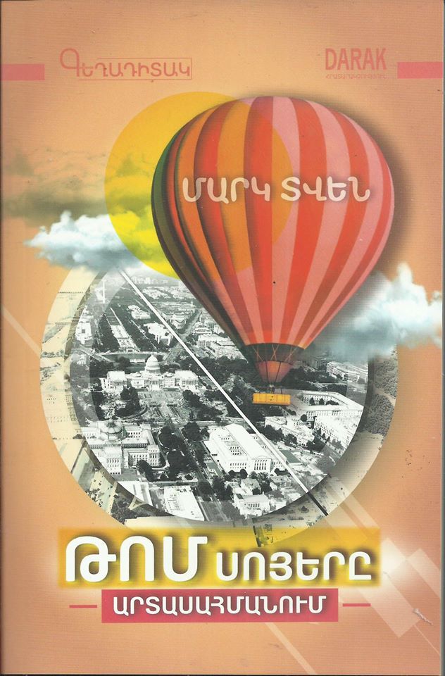 «Թոմ Սոյերը արտասահմանում» վիպակը, «Թոմ Սոյերի արկածները» և «Հեքելբերի Ֆինի արկածները» ստեղծագործությունների շարունակությունն է, որը մինչև այժմ անհայտ է հայ ընթերցողին: Մարկ Տվենի հերոսներն օդապարիկով ճանապարհորդում են Ամերիկայի, Ատլանտյան օվկիանոսի, Սահարա անապատի և Եգիպտոսի վրայով՝ նոր արկածներով հարստացնելով իրենց կյանքը: