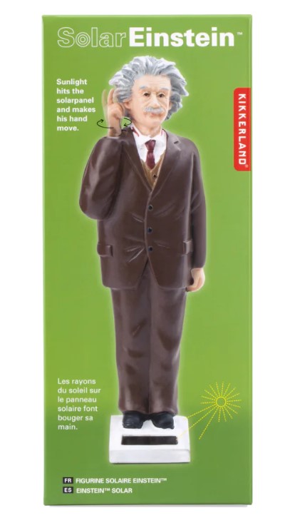 Albert Einstein once said, True art is characterized by an irresistible urge in the creative artist. Chris Collicott has indulged his irresistible urge by creating this solar Einstein. When the sun is shining Einstein will gently remind you to think before you act by gesturing to his immense brain. Solar Einstein is part of our vast collection of solar powered figurines, ranging from The Queen to The Pope.