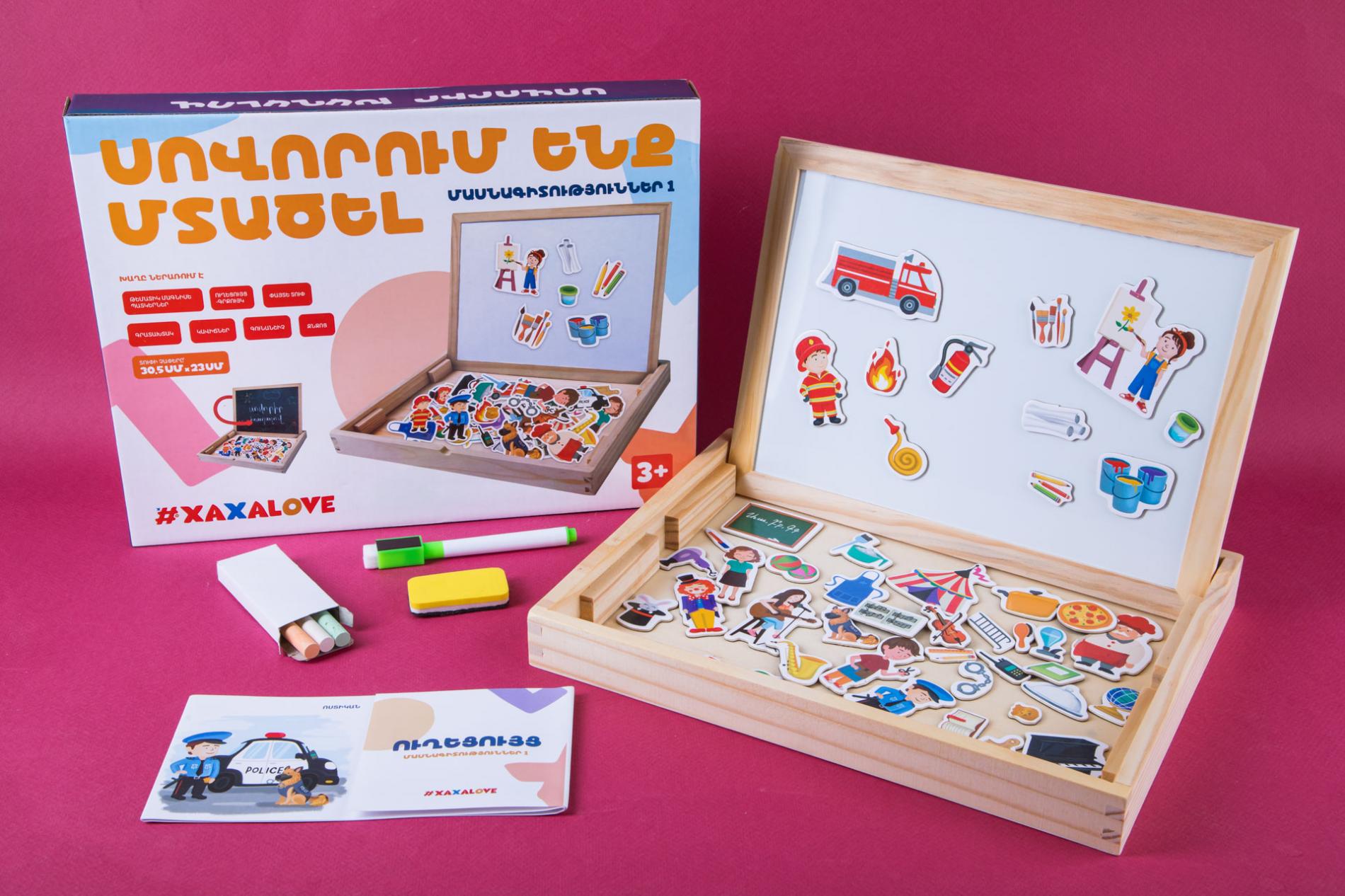 Երեխայի մտածողությունը, վերլուծական, պատճառահետևանքային կապեր գտնելու ունակությունը զարգացնելու հրաշալի խաղ է: Նախատեսված է երեքից բարձր տարիքի երեխաների համար: Խաղի միջոցով երեխան կսովորի տարբերակել և խմբավորել առարկաները, կծանոթանա այս կամ այն առարկայի կիրառական նշանակությանը։ Խաղը բաղկացած է փայտե տուփից, գրատախտակից, գունանշիչից, կավիճներից և մագնիսե կտորներից: Մագնիսե կտորները կազմում են առանձին թեմատիկ խմբեր: Պետք է որոշել պատկերների միջև եղած կապերը և միավորել դրանք առանձին խմբերում: