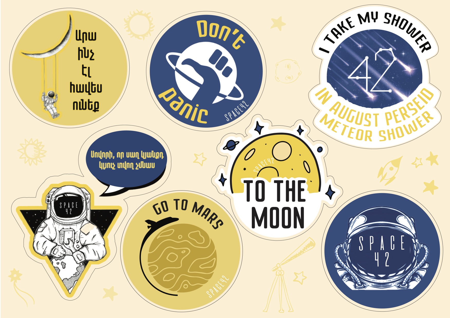 Գեղեցիկ և հումորային դիզայնով սթիքերների հավաքածու՝ տիեզերական թեմատիկայով։ Կարող եք օգտագործել նոութբուքի, հեռախոսի, նոթատետրերի, օրագրերի և այլ իրերի զարդարման համար։ Սթիքերները պատրաստված են որակյալ թղթից երկարատև օգտագործման համար։