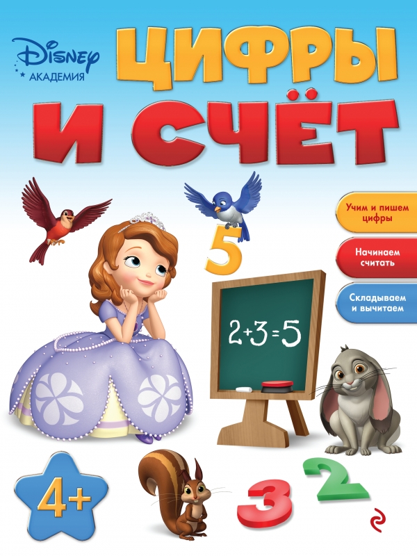 Занимаясь по этой книге, ребёнок в увлекательной игровой форме познакомится с цифрами, научится их писать, освоит прямой и обратный счёт, а также научится складывать и вычитать в пределах 10. А герои нового мультсериала Disney 'София Прекрасная' с удовольствием придут малышу на помощь! Издание предназначено для детей старшего дошкольного возраста. Для детей от 4 лет.