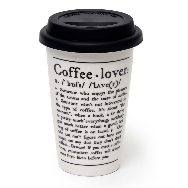 TU VUÒ FÀ L’AMERICANO Ø 10 cm, H 15 cm - 300 ml DOUBLE-LAYER NEW BONE CHINA PORCELAIN MUG - Keeps your drinks warm - With soft silicone lid