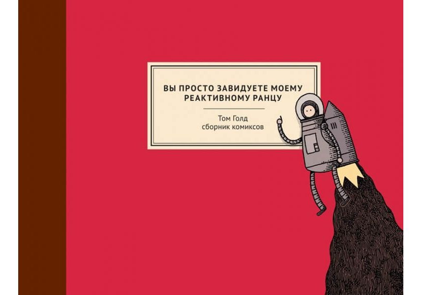 Вы просто завидуете моему реактивному ранцу' - сборник стрипов, то есть коротких комиксов, которые Том Голд пишет для газеты The Guardian уже более 10 лет. Юмор Голда чисто английский: сухой, едкий, понятный только посвященным, и прежде всего - книжным червям. Главное действующее лицо и объект насмешки здесь - книга как таковая. Отрастив ножки, она идет гулять и забредает то в басню, то в будущее, то в интернет, встречает мемы, динозавров, безумных ученых, неандертальцев, видеоигры и обязательных для Голда роботов.